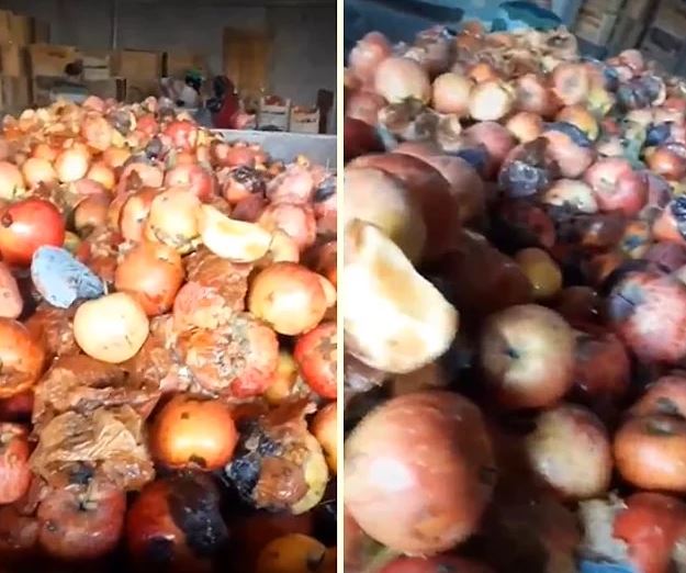 Binlerce çürük meyvenin bir arada olduğu o görüntüleri çeken kişi, "valla çekeceğim abi millet ne içtiğini bilsin" diyor...