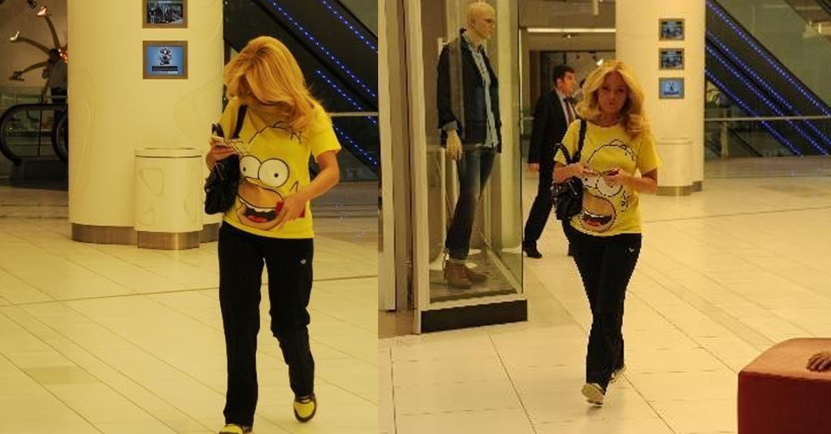 Sunucuyu alışveriş merkezinde korumasıyla gezerken görenler çok zor tanıdı.