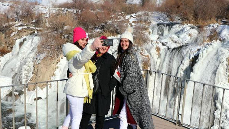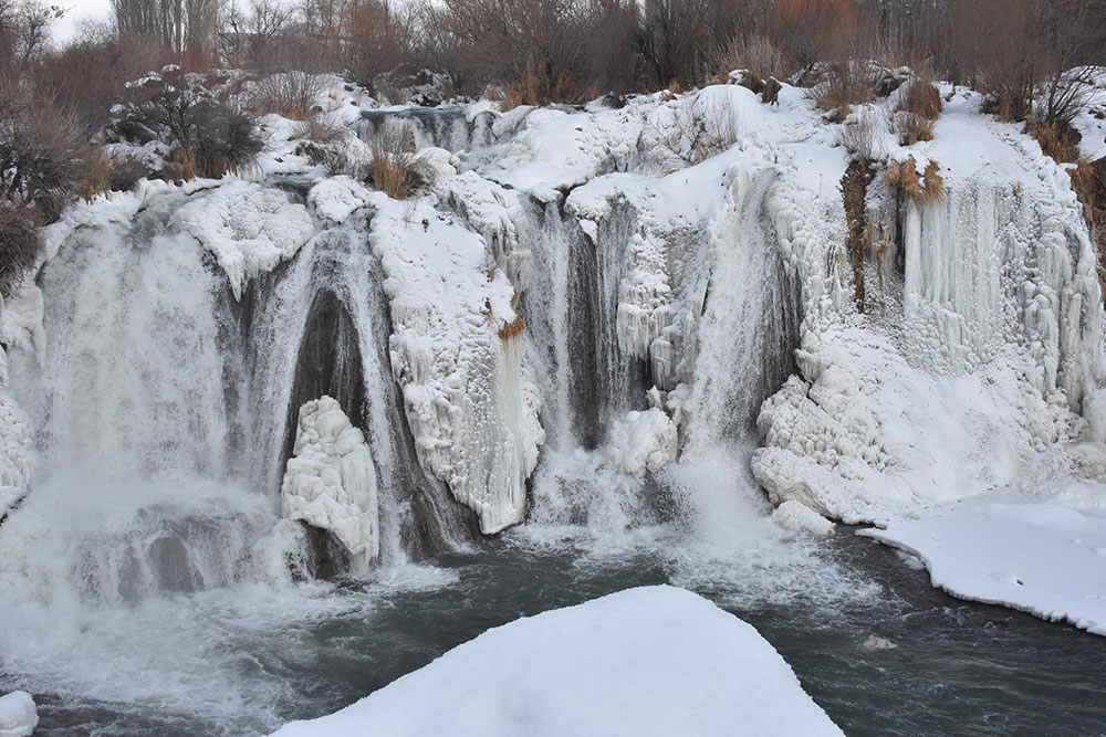 Yaklaşık 20 metre yükseklikten akan şelale, hava sıcaklığı -20 dereceye düşünce kısmen dondu ve ortaya harika manzaralar çıkarttı.