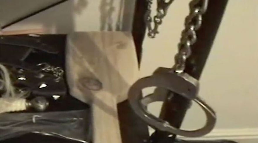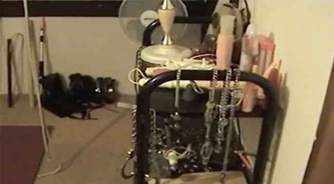 Polis arama sırasında kırbaçların, gaz maskelerinin, tahta sopaların, kelepçelerin, çamaşırların, zincirlerin ve nazi üniformalarının bulunduğu yüzlerce eşyayla dolu sonradan zindana dönüştürülmüş bir odayı ortaya çıkardı.