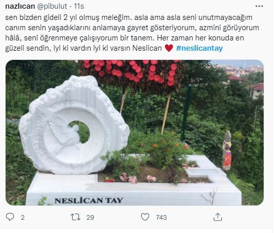 Dördüncü kez kansere yakalanan Neslican Tay, 2019 da hayatını kaybetmişti. Bu ölüm sevenlerini üzmesinin yanı sıra, tüm takipçilerini de yasa boğdu. Ölümünün ikinci yılında da unutulmadı.