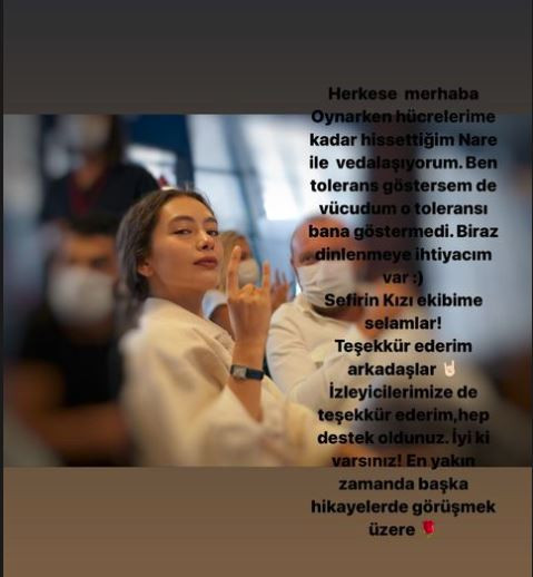 ‘Ben tolerans göstersem de vücudum o toleransı bana göstermedi. Biraz dinlenmeye ihtiyacım var. Sefirin Kızı ekibime selamlar!’