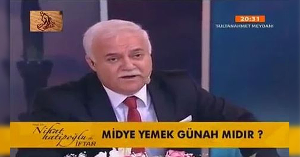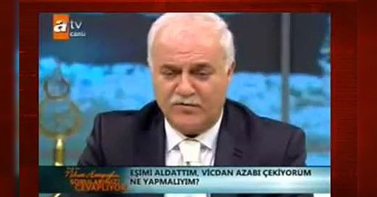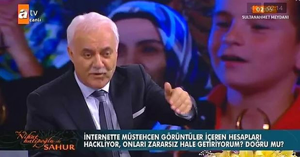 Nihat Hatipoğlu'nun programına katılan kadın izleyici Hatipoğlu'na şu soruyu sordu; "Hocam güzellik uzmanıyım. Kalıcı makyaj ve protez tırnak yapıyor, buradan para kazanıyorum. Bunun günahı var mı?" Ünlü akademisyenin buna cevabı ise; "Böyle bir şeye doğrudur diyemem, hastalık durumu hariç tabii… Hastalıktan dolayı kaşı, saçı dökülmüş kişiler ayrı. Deri altına yapılan kalıcı makyaj abdest veya gusüle engel değil. Fakat Peygamber Efendimiz vücutla bu şekilde oynamayı hoş görmüyor. Protez tırnağın ise hiç kurtarır yanı yok, elinizden geldiğince kaçının! Protez tırnak abdest ve gusüle engeldir. Siz protez işini yapmayın, kalıcı makyajı ise sadece hastalar için yapın." oldu.