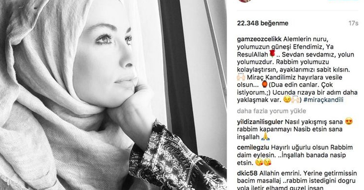 Ünlü oyuncu ve manken Gamze Özçelik, geçtiğimiz yıllarda tesettüre girmişti.