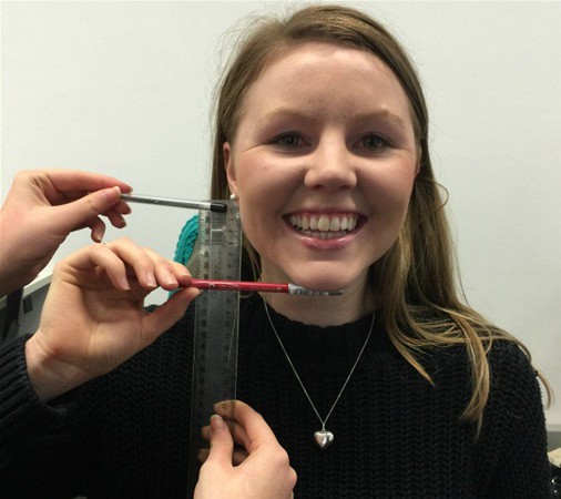 Çenenizin altına kalemi yatay olarak, kulağınızın altına da cetveli dikey olarak yerleştirin.