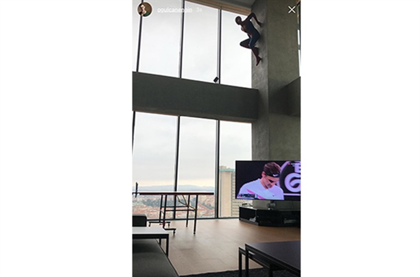 Oğulcan engin'in evinin duvarında büyük bir örümcek adam heykeli var.