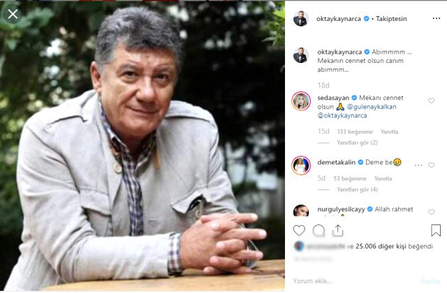 Ünlü oyuncunun acı haberini alan oktay kaynarca ise üzüntüsünü sosyal medyada dile getirdi.