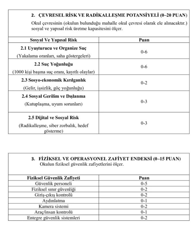 Doğal afetler ve güvenlik tehditlerine karşı acil durum planları da güncellenecek. Korunma, tahliye, kurtarma ve ilk müdahale süreçlerini içeren planlarla okulların kriz anlarına hazırlık kapasitesi güçlendirilecek. Valilikler, alınan tedbirler ve uygulama sonuçlarına ilişkin raporları okulların açık olduğu dönem boyunca her ay Milli Eğitim Bakanlığı ve İçişleri Bakanlığına iletecek.