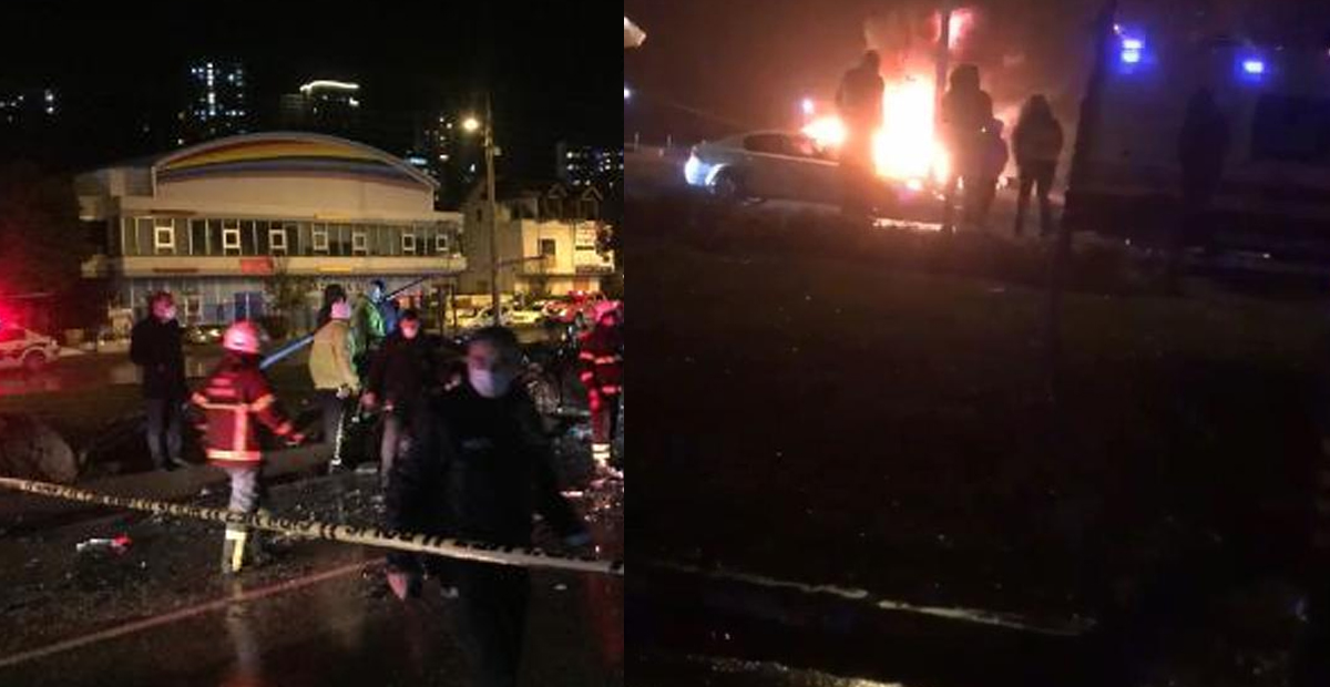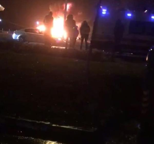 Kazanın ardından 2 araç alev aldı.