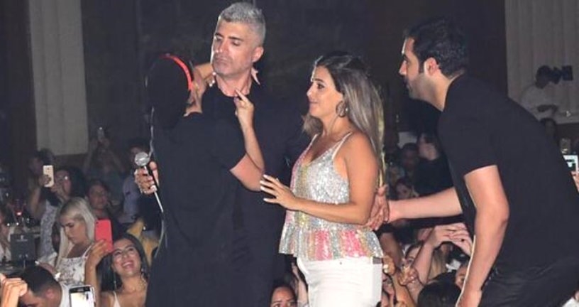 Sahneye çıkmak isteyen hayranları, görevlilere zor anlar yaşattı.