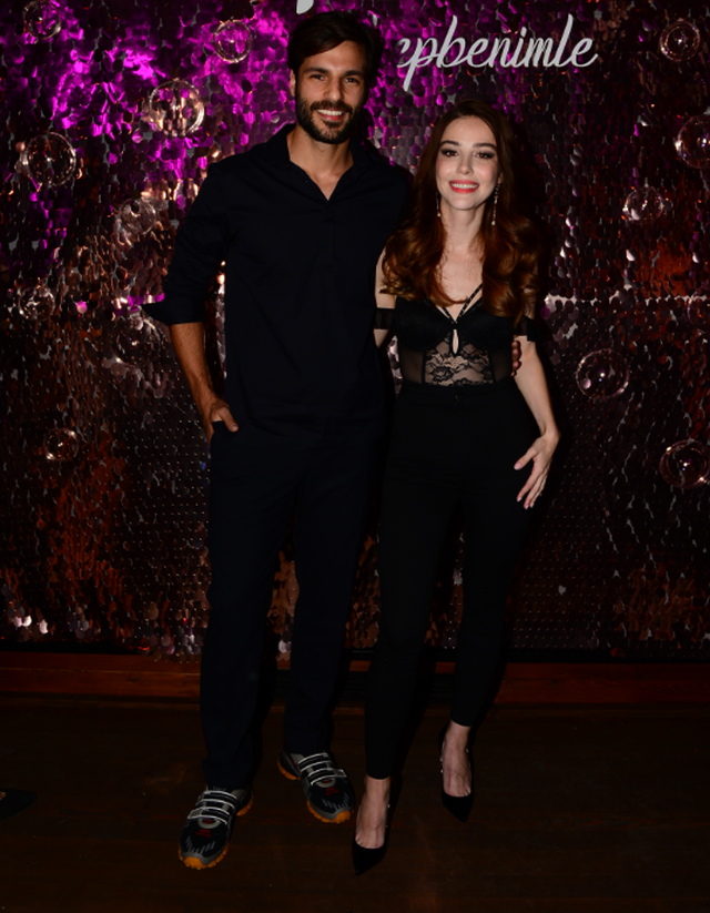 Ünlü bir markayla el sıkışan özge gürel, reklam filminin ilk kez görücüye çıktığı partiye katıldı