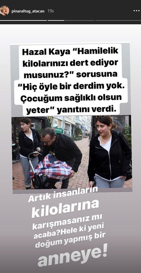 Sosyal medyayı aktif olarak kullanan güzel oyuncu pınar altuğ, hazal kaya’nın ‘hamilelik kiloları’yla ilgili bir haberini ınstagram hesabının hikaye kısmında paylaştı.