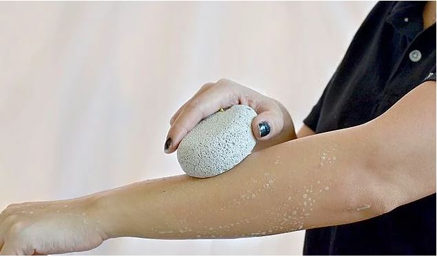 -ölü cilt hücrelerini temizlemek ve kılları yumuşatmak için bölgeyi ılık su ile yıkayın. -cildinizi hafifçe kurulayın. -taşı kıllar dökülünceye kadar dairesel bir hareketle kıllara hafifçe bastırın. -iyice nemlendirin. -tüm kıllar temizlenene kadar birkaç günde bir tekrarlayın.