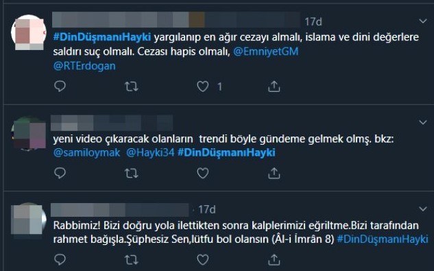 Kullanıcılar "dindüşmanıhayki" hashtagiyle rapçiyi eleştiri yağmuruna tuttu.