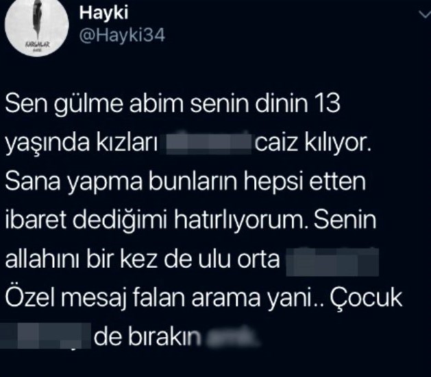 Hayki, yaptığı paylaşımda dini değerlere hakaret etti.