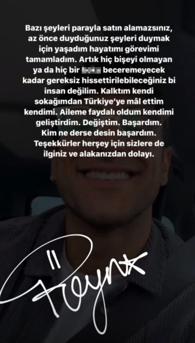 Kalktım kendi sokağımdan, türkiye'ye mal ettim kendimi. aileme faydalı oldum, kendimi geliştirdim. değiştim, başardım. kim ne derse desin!' ifadelerini kullandı.