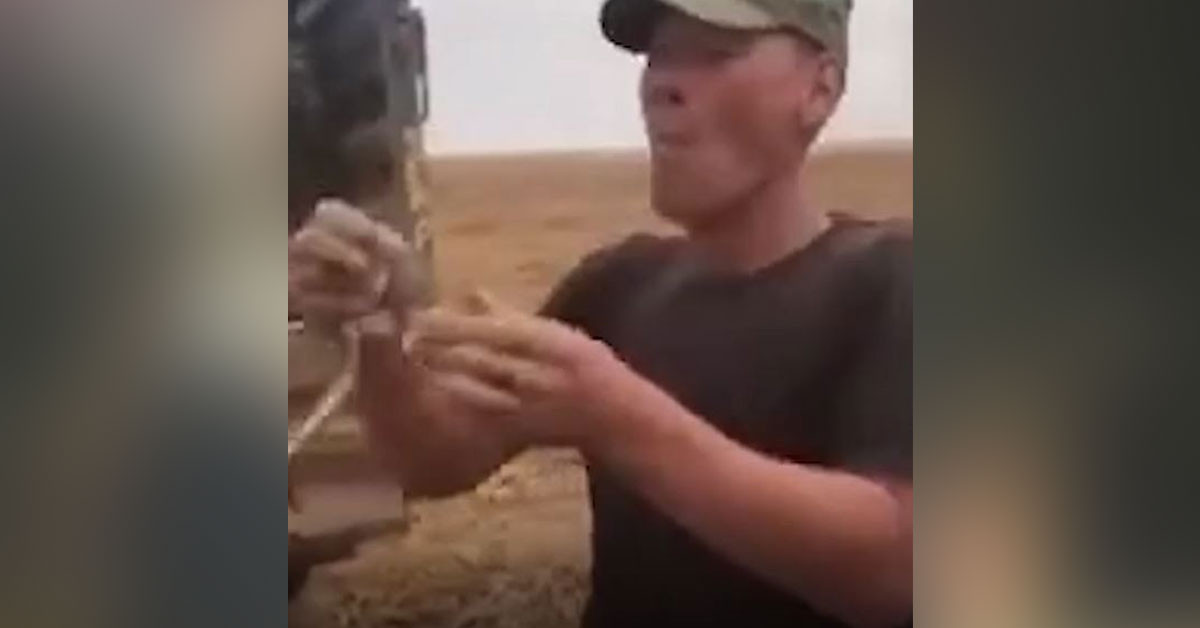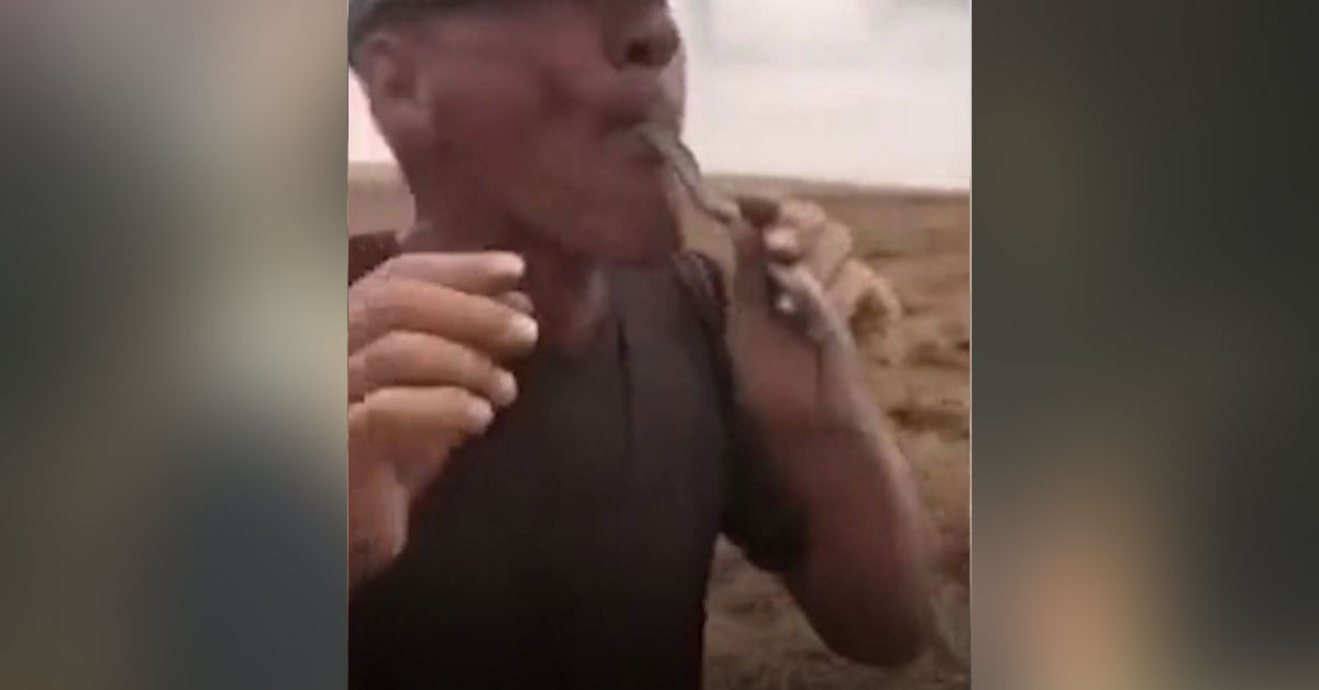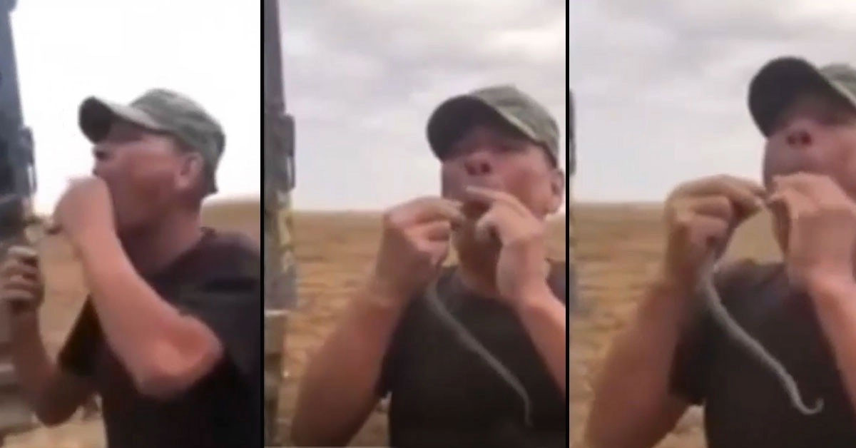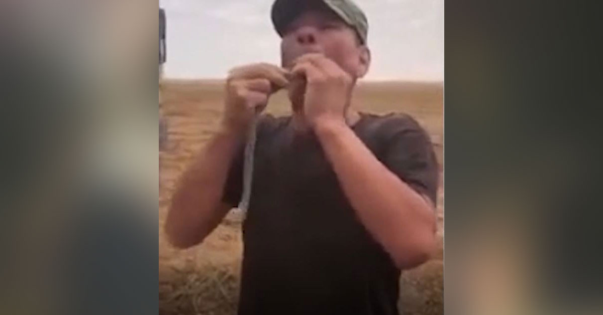 Rusya da çiftçilik yapan bir adam karpuz tarlasında bulduğu yılanı ağzına soktu.