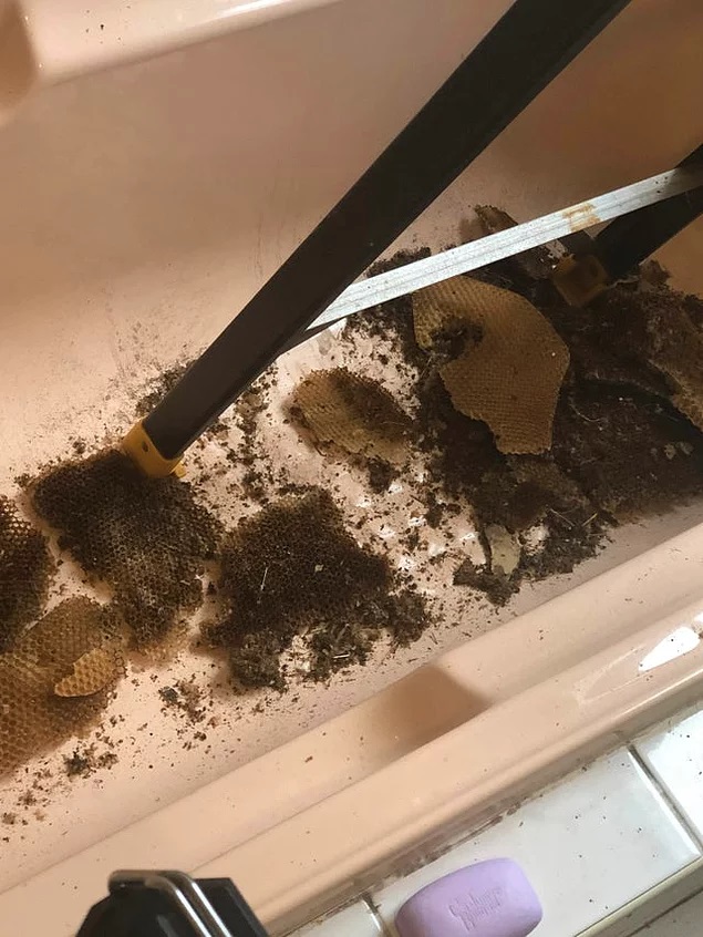 "tavanda sızıntı yapan yeri bulmak için delik açtım, eski bir bal peteği düştü."