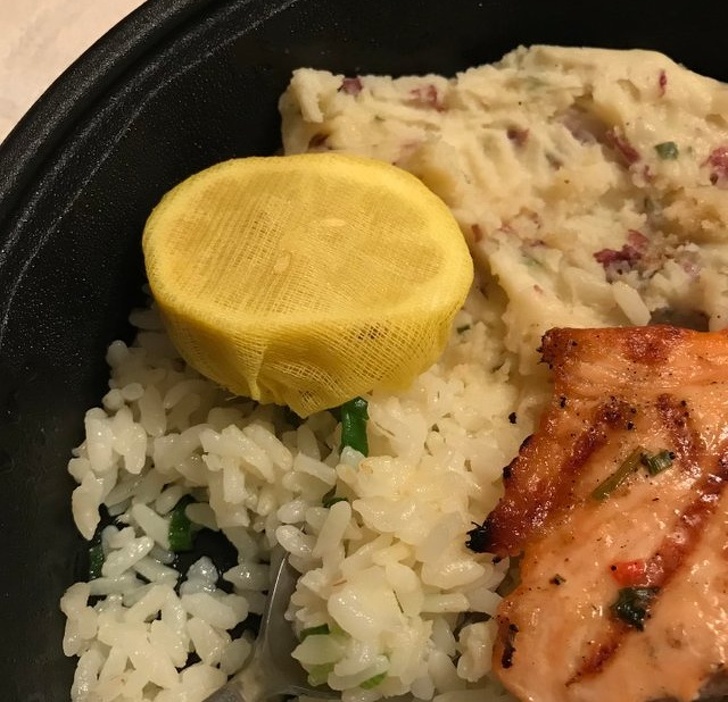 Bu limon bir örgü sarımla geldi, böylece sıktığınızda tohumlar yemeğinize düşmez.
