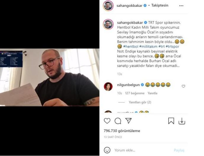 Trt spor spikerini Gökbakar böyle tiye aldı.