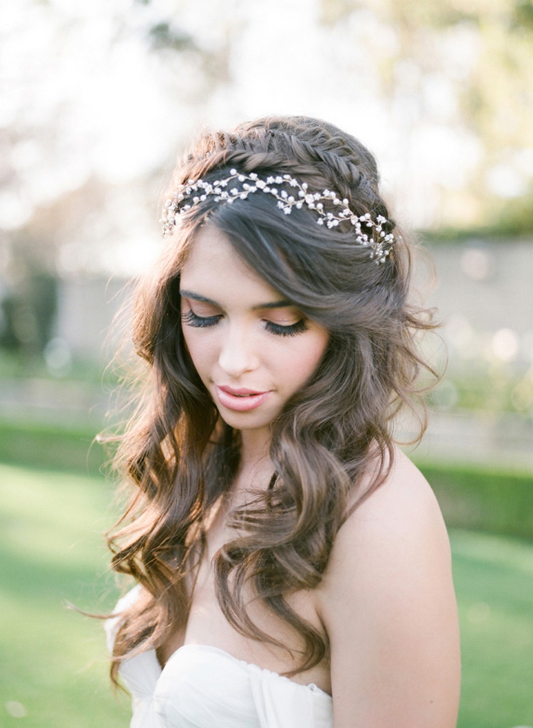 Yeşillikler içinde, sade gelinliğin ve doğal, dağınık dalgalı saçlarınla eminiz ki harika görüneceksin!