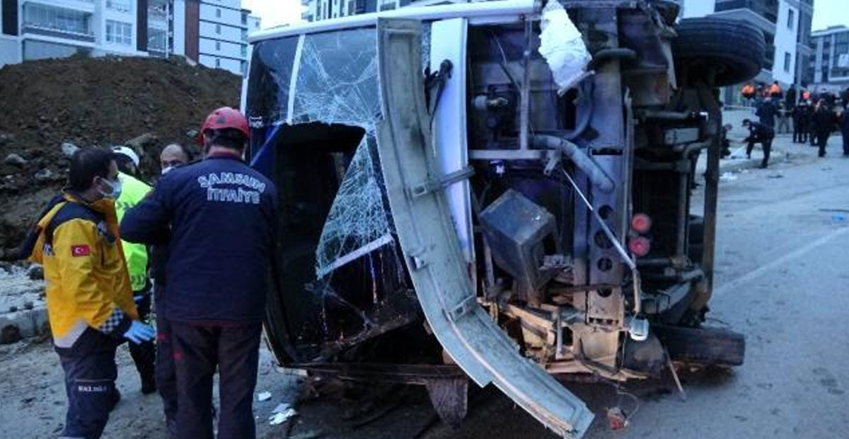 Samsun'da belediye işçilerinin olduğu servis rampadan inerken freni tutmayınca ışık direğine çarpınca durabildi. Kaza sonucunda adeta can pazarı yaşanırken, iki işçi kaza yerinde yaşamını yitirdi. Yaralanan 22 işçi de etraftaki hastanelere kaldırıldı. Emniyet güçleri kazaya ilişkin tahkikat başlattı.