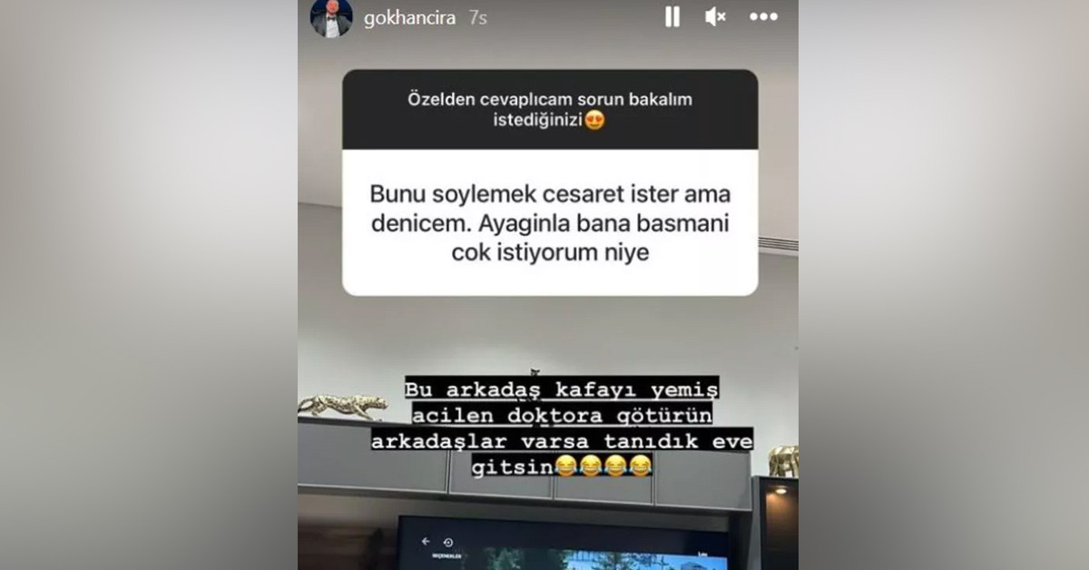 Gökhan Çıra'ya bir takipçisi, "Bunu söylemek cesaret ister ama deneyeceğim. Ayağınla bana basmanı çok istiyorum" dedi.