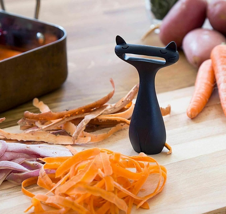 Üzgün bir kedi gibi görünen sebze soyucu