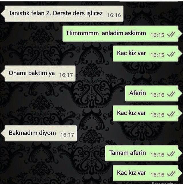 Sosyal medyada her şeyin birer komedi unsuru olduğunu artık herkes biliyor. buna whatsapp konuşmalarınızda dahil. sosyal paylaşım sitelerinde yayılan bu whatsapp konuşmaları sizi kırıp geçirecek nitelikte sohbetler ile karşınıza geliyoruz.