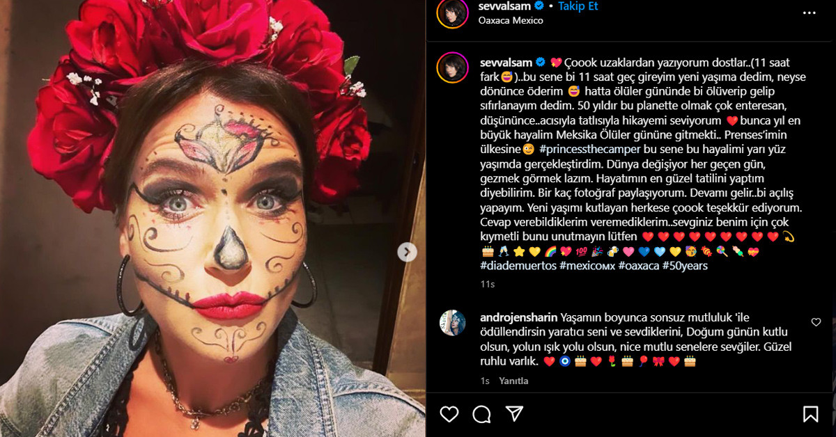 Son dönemlerde Yasak Elma isimli yapımda aldığı rolle adından söz ettirmiş olan ünlü oyuncu ve şarkıcı Şevval Sam 50 yaşına Meksika’da girdi. Şarkıcı Şevval Sam, yıllardır hayalini kurduğunu söylediği Ölüler Günü Festivali’ne katıldığını duyurdu. İşte o anlar…