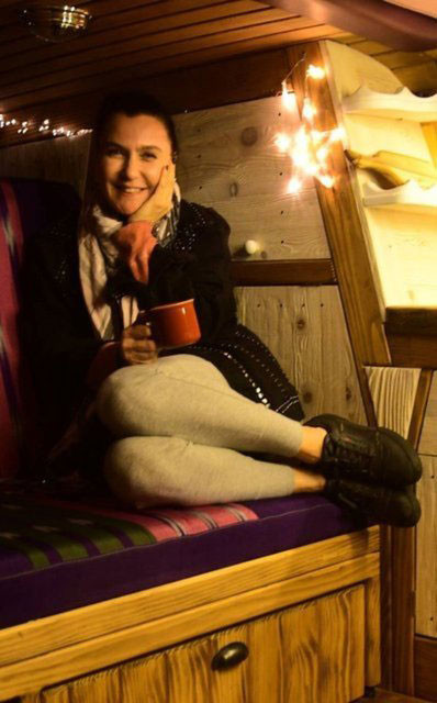 ‘Yıllardır evimde kullandığım koltuklarımın kılıflarını burada kullandım. Karavanın içi tamamen ahşap yapıldı. Bana bu 2021’in ilk hediyesi oldu’