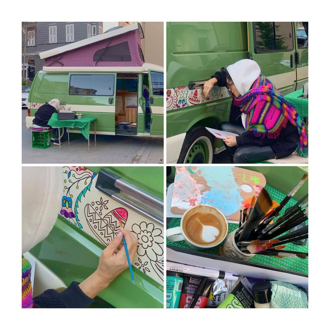 Ünlü oyuncu ve şarkıcı Şevval Şam, geride bıraktığımız gün Cihangir’de kameralara yansıdı. Karavanına resim çizerken görüntülenen ünlü oyuncu, ‘Arkadaşlar lütfen rica ediyorum, çekmeyin daha hiçbir şey bitmedi biliyorsunuz size söz verdim. Bitsin, ilk sizlere fotoğraf çektireceğim’ ifadelerini kullandı. Daha önce de karavanına resim çizerken görüntülenen Sam için, ‘Şevval Sam iş başında’ yorumları yapıldı.