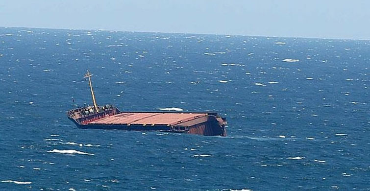 Motor arızası yapan bir gemi, Pasifik Okyanusu'nun soğuk sularına gömüldü.