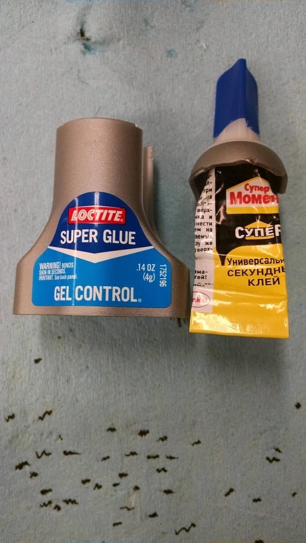 Sağdaki süper yaptıştırıcı, amerika'da bir markette satılmaktadır ve amerikan yapımı bir üründür. ancak bu yapıştırıcıyı alan kişi yapıştırıcıyı kestikten sonra içerisinden çıkan şeyle kısa süreli bir şok yaşamıştır. çünkü yapıştırıcının içerisinden rusya'da üretilmiş farklı bir markaya ait bir yapıştırıcı çıkmıştır. rus yapımı ürünün nasıl amerikan yapımı bir yapıştırıcının içerisine girdiği ise büyük bir soru işaretidir.