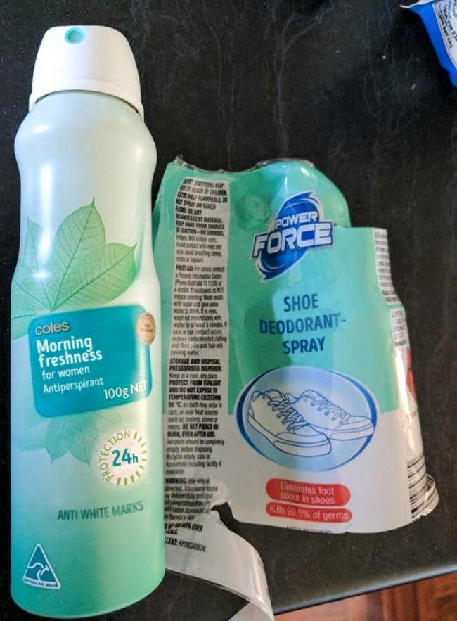 Sıradaki fotoğraf ise listemizin en garip fotoğrafı olabilir. çünkü ayakkabı deodorantı olarak satılan ürün aslında kadınların kullanımı için üretilmiş deodorantmış. bizden size öneri bu tarz şeylerle karşılaşmamak istiyorsanız, aldığınız ürünleri iyice kontrol edin.