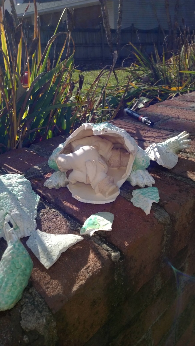 Bu fotoğrafta ise bahçelerindeki büyük kurbağa heykelinin kırılmasıyla gün yüzüne çıkmış 2 kardan adam bulunmakta. eğer kurbağa kırılmasaydı heykelin sahibi asla bu 2 kardan adamla tanışamayacaktı.