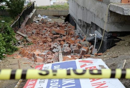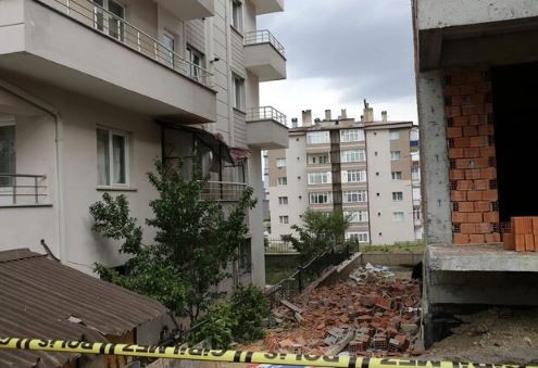Mimar Mahallesi'nde de fırtınanın tesiriyle bir inşaatın çatısı kısmından düşen tuğlalar yan binanın üç balkonunda hasar oluşmasına yol açtı.