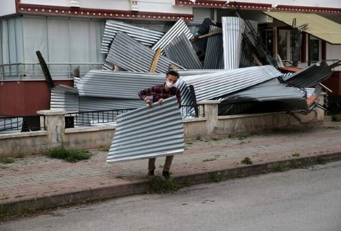 Sivas'ta beş apartmanın çatısının şiddetli fırtına sebebiyle hasar aldığı belirtildi.
