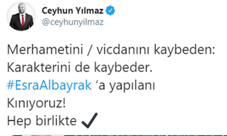 Ceyhun yılmaz: “merhametini, vicdanını kaybeden karakterini de kaybeder. esra albayrak'a yapılanı kınıyoruz. hep birlikte”