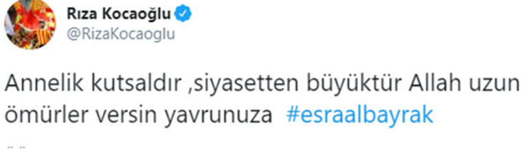 Rıza kocaoğlu: “annelik kutsaldır, siyasetten büyüktür. allah uzun ömürler versin yavrunuza esra albayrak”