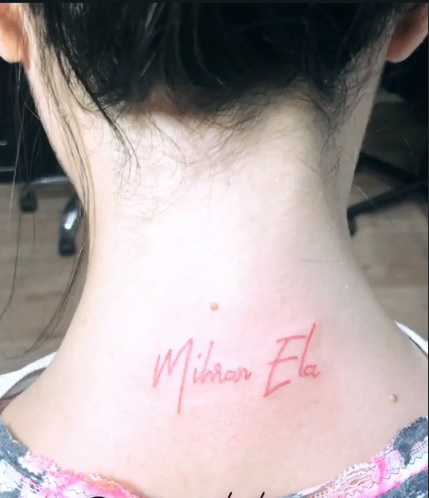 Dövme yaptıran ovalı, ensesine mihran ela yazdırdı.