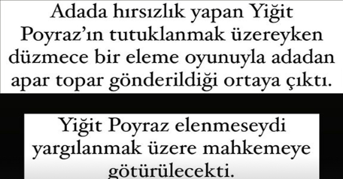 Düello sonrası adaya veda eden isim Poyraz oldu. Fakat ortaya atılan iddialar bu elemenin kasti olduğunu söyledi.