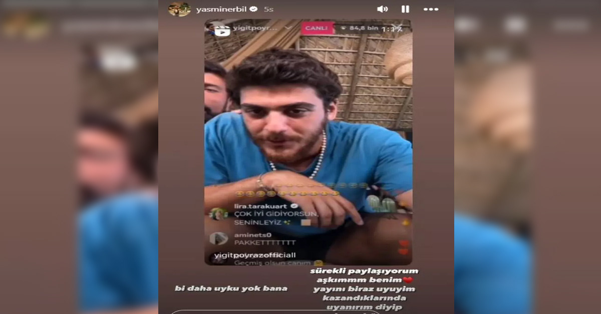 Yiğit Poyraz'ın canlı yayın hakkının sonunda yayına katılan Yasmin Erbil'e sevgilisi adeta trip attı. Survivor Poyraz "Yasmin Erbil şimdi katıldı iyi oldu katıldığın zahmet oldu aşkım" dedi.