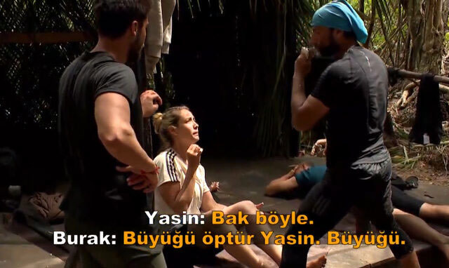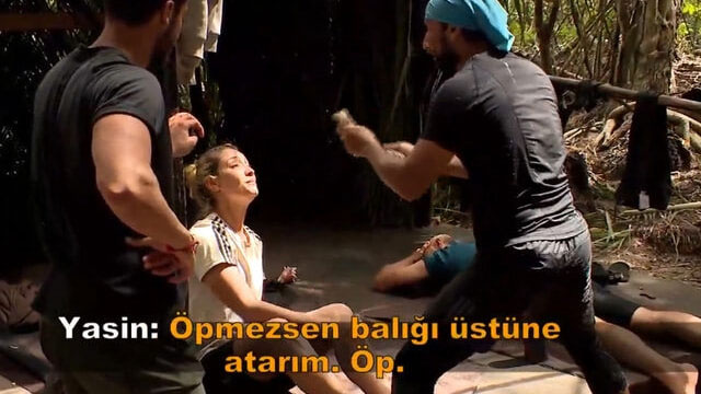 Yasin, evrim'in balıktan korktuğunu fark edince yüzüne balığı yaklaştırıp 'öp bir kere' diye ısrar etmeye başladı. evrim ise panik yaşadı ve yasin'e balıkları kendisinden uzak tutmasını istedi.