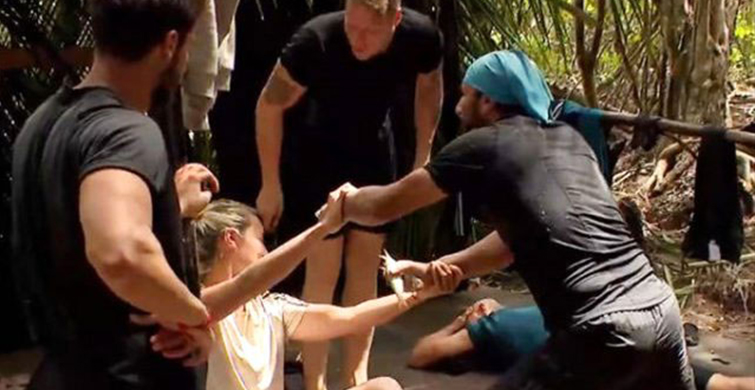 Yarışmanın ardından adalarına dağılan yarışmacılardan ünlüler takımında yer alan mert, gece yanan ateşin sönmemesi için uğraştı. işini bitirip uyumak için barakaya ilerleyen mert direğe tutunamadı ve bir anda yere kapaklandı. sesleri duyan ersin hemen kalktı ve mert'e yardımcı oldu.