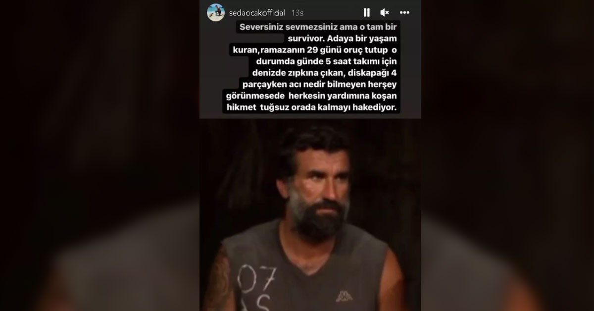 Seda sosyal medya hesabı üzerinden Hikmet Tuğsuz için "Seversiniz sevmezsiniz ama o tam bir Survivor. Adaya bir yaşam kuran, Ramazan'ın 29 günü oruç tutup o durumda günde 5 saat takımı için denizde zıpkına çıkan, diz kapağı 4 parçayken acı nedir bilmeyen, her şey görünmese de herkesin yardımına koşan Hikmet Tuğsuz orada kalmayı hak ediyor." cümlelerini paylaştı. Ayrıca kendisinin de elenmesi hakkında konuşan Seda Ocak bunu hiç kabullenemediğini söyleyerek şunları dedi; "Giydirme storylerine başladığıma göre demek ki elenmenin etkisinden kurtulmuşumdur. Zaten öyle çokta şey yapmadım. Var ya gerçekten baya bozuldum elenince. Nasıl ya dedim ben nasıl elendim buradan, yarışacaktım daha filan diyorum kendi kendime. Baya üzüldüm gerçekten, hatta elendikten sonra yeni bölüm yayınlanana kadar telefonlar verilmiyor.Yanımızda da birileri kalıyor. Benim yanımda çok tatlı bir kız vardı. Elendikten sonra 'Abla ya elendikten sonra şunu isterler bunu isterler. İlk defa bir yarışmacı elendikten sonra hiçbir şey istemedi şaşkınım' dedi. Kız dedim ben daha önce hiç elenmedim ki bir şey istenir mi bilmiyorum. Şaka bir yana öyle yani bayağı bozuldum."