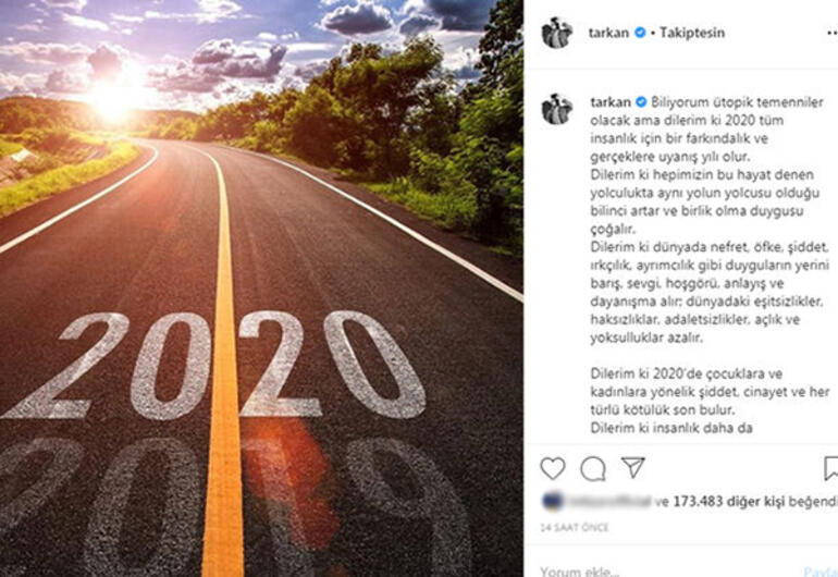 Paylaşımında birlik mesajı veren ünlü sanatçı tarkan, şu ifadeleri kullandı: “biliyorum ütopik temenniler olacak ama dilerim ki 2020 tüm insanlık için bir farkındalık ve gerçeklere uyanış yılı olur.