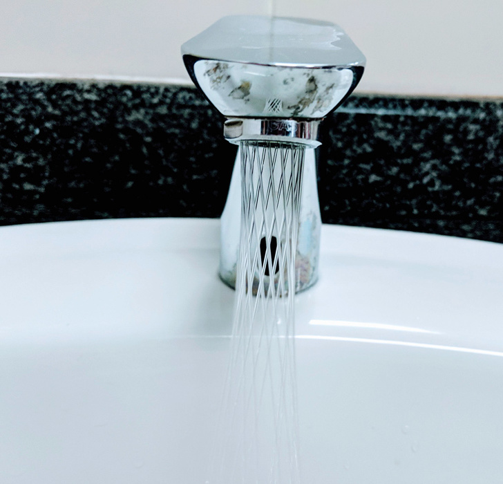 Johannesburg havaalanında çapraz desenli su aktan musluk.