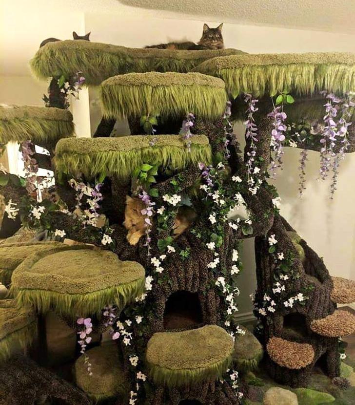 Kedi ormanına sahip bu ev, kediler için saray niteliğinde.