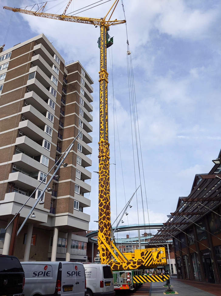 Bu vinç bir zürafa gibi boyanıyor.